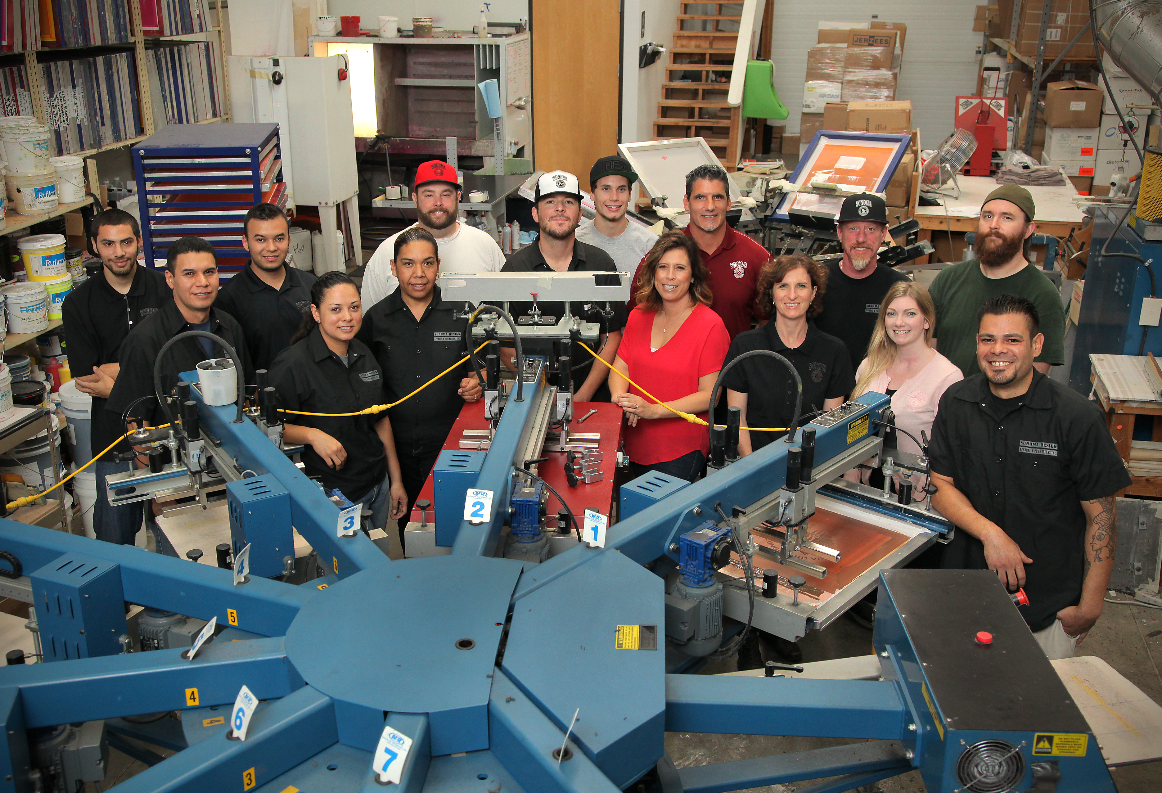 Sonoma Design, Apparel & Promotions, Inc. has two locations in the beautiful wine counties of Napa and Sonoma. They are considered one of the premier apparel decorators in the country. With over 14 years of experience in the apparel industry, Our goal is to turn your ideas into reality. Not only do they specialize in screen printing and embroidery, but they offer two of the latest engineering techniques in the apparel industry: In-Line Foil Stamping and Flextran. They not only provide these services but, more importantly, they provide a family atmosphere throughout the entire organization and a benchmark for excellence in consistency and customer responsiveness.