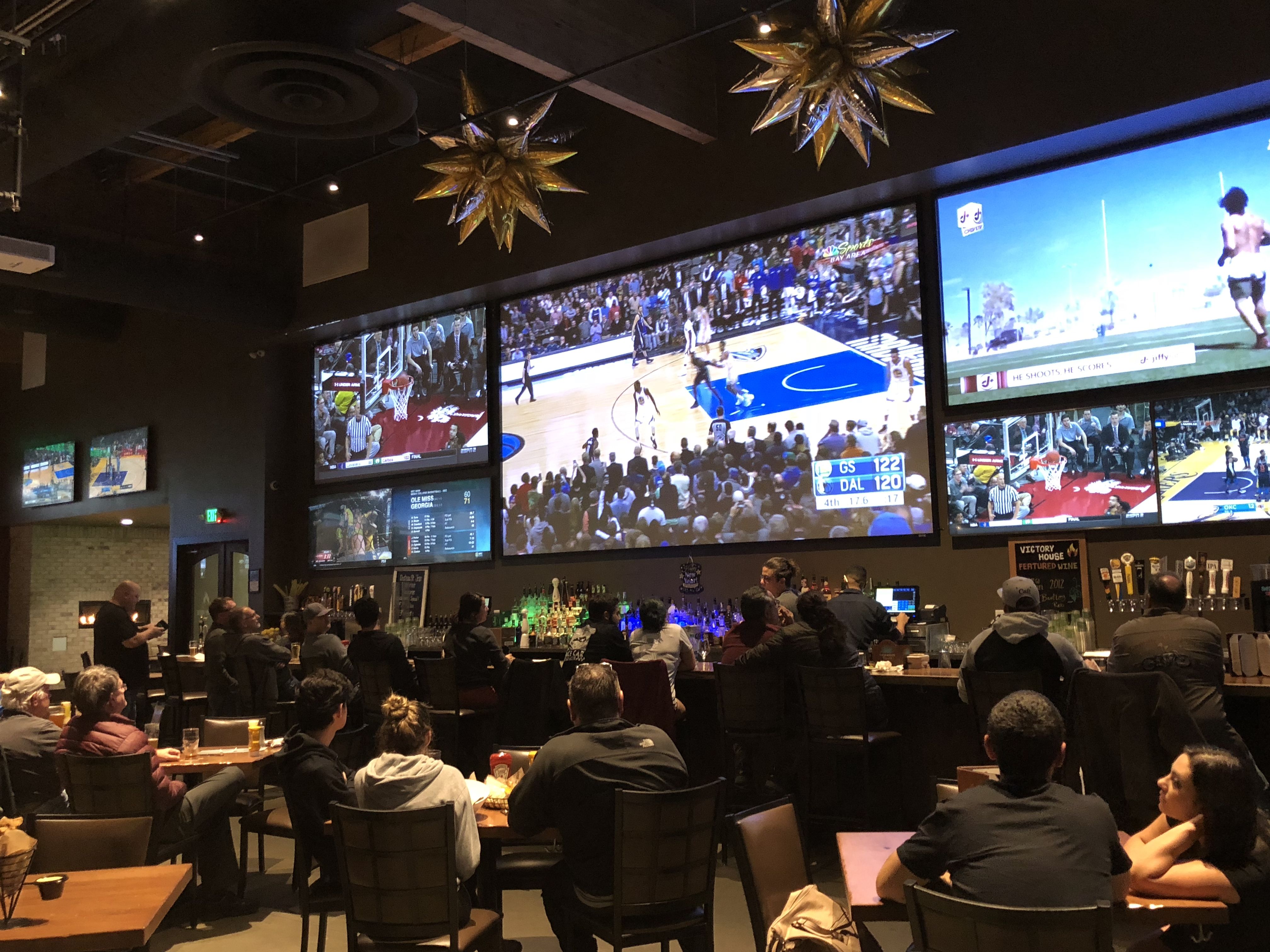 Great food, amazing sports viewing on the huge and numerous TVs, and a full selection of beverages for all ages. Victory House also features a patio area and the Trophy room for private dining and sports viewing.