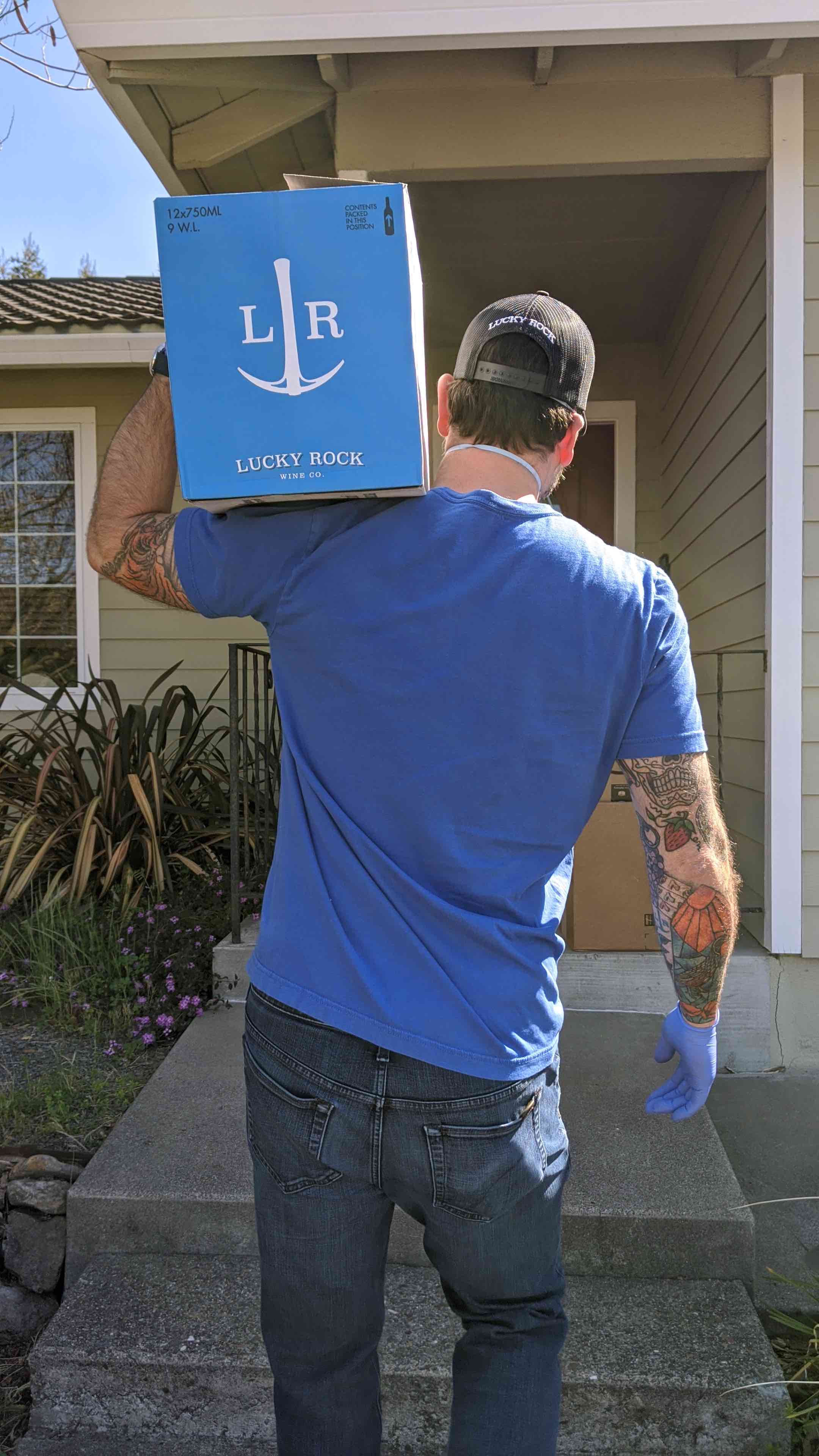 My first delivery in the time of coronavirus consisted of six bottles of wine from Lucky Rock Winery, which delivers for free, right to your doorstep! Literally, the winemakers themselves, Aaron and Jesse Inman, drove their delicious $22 bottles of Pinot Noir (which I split with a neighbor) to my house on a Thursday afternoon.