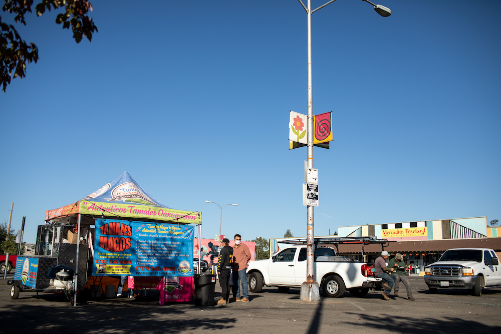 Marta Sanchez, who works at General Hydroponics up the road, has been buying her lunch here twice a week for the last three months, since a friend recommended it. She nabs the last mole negro tamale, which Pacheco adorns with cojita, roasted pepitas, microgreens, crema, and edible flowers (a reminder of his mother’s Dia de los Muertos ofrenda). “These are the best I’ve ever had,” Sanchez tells me before walking off with her hearty plate, a California twist on tradition.