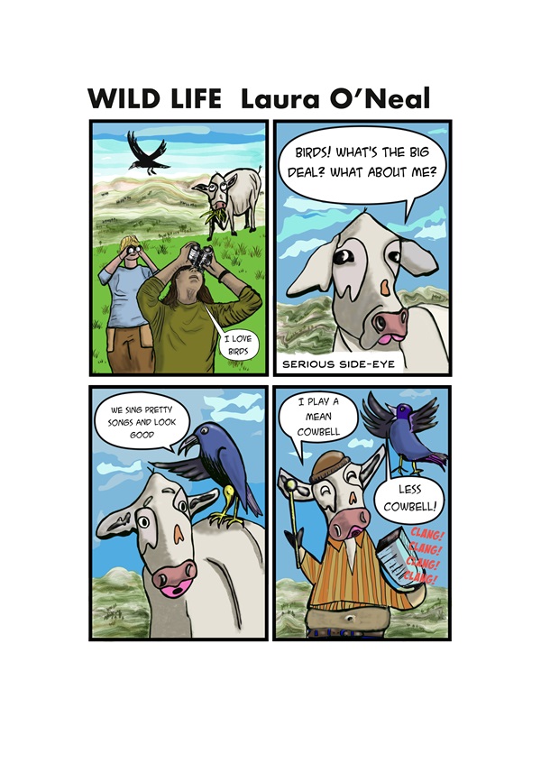 The landscape shapes me. The animals and plants excite me. To have an opportunity to tell stories about animals, community, culture, and all that is Sonoma County is a dream come true. So here I am, with my second-ever comic strip, Wild Life. Enjoy.